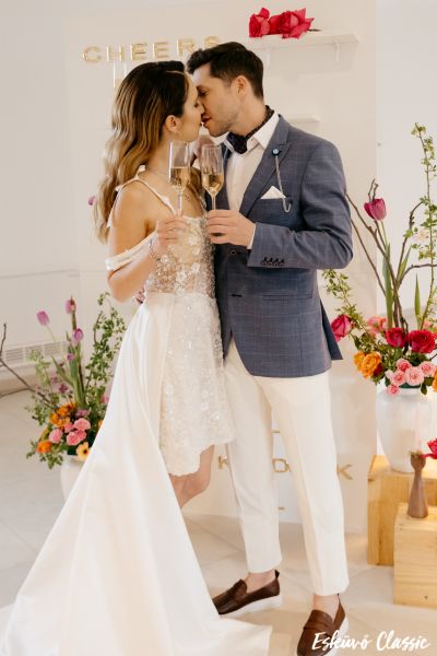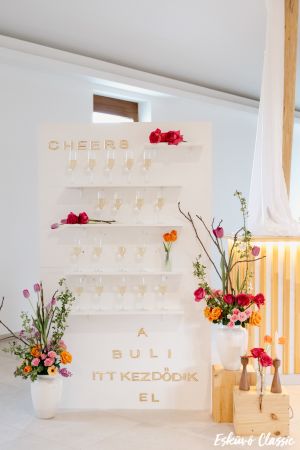 A Virág Másképp mindig arról szól, hogy a megszokott dolgokat új nézőpontból mutassam meg. A klasszikus virágcsokor is lehet más – és egy pohár pezsgő is lehet élmény. Ezért hoztuk el az Esküvő Classic fotózásra: